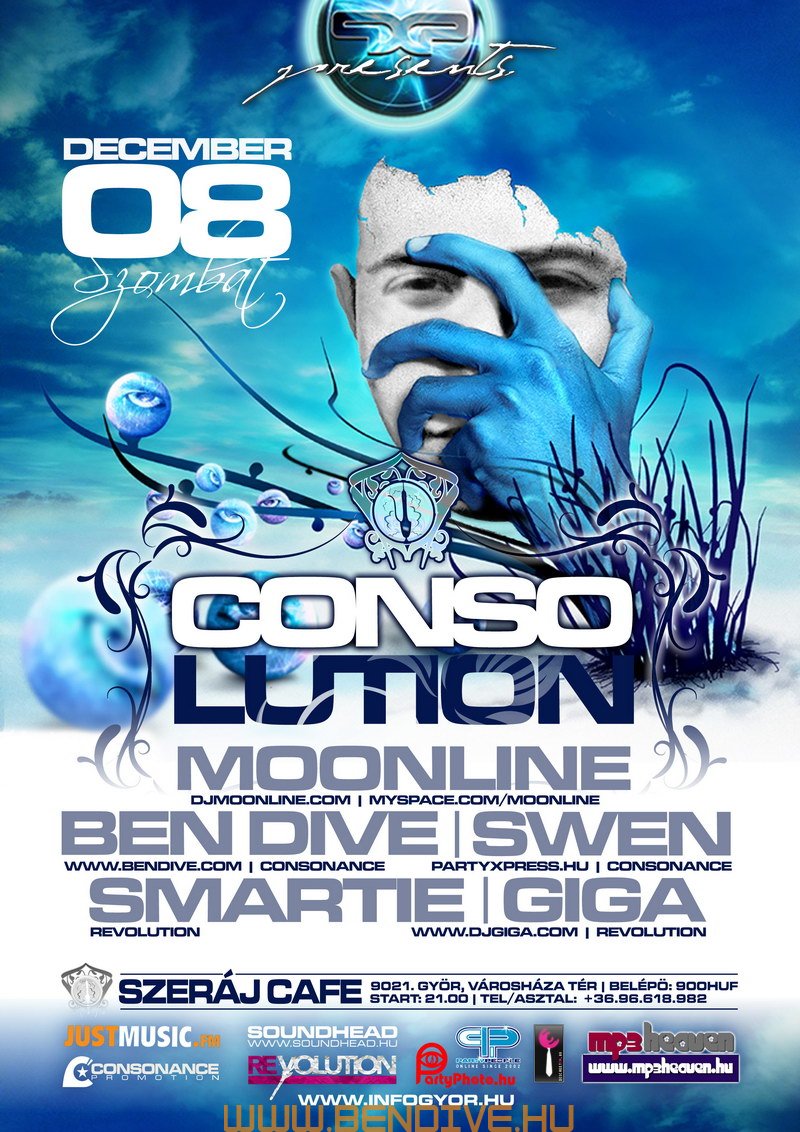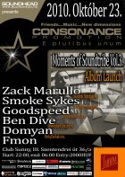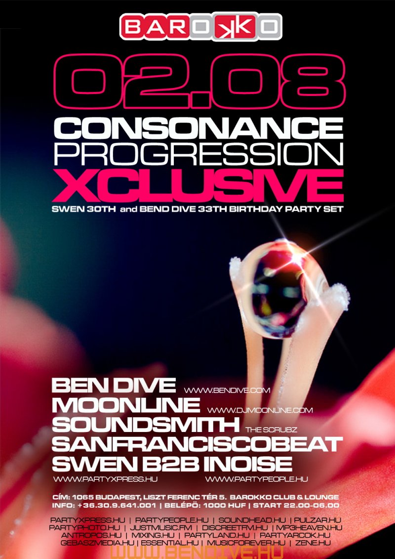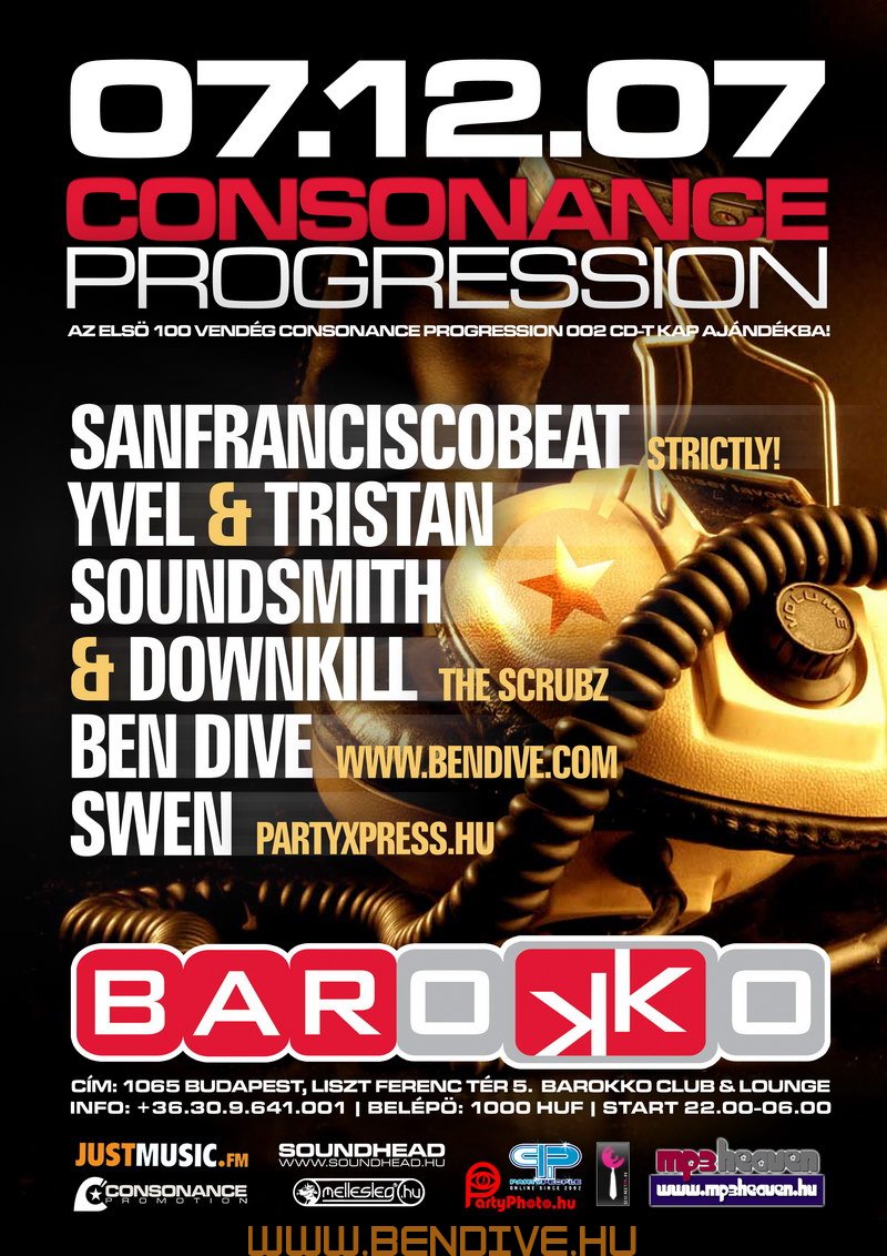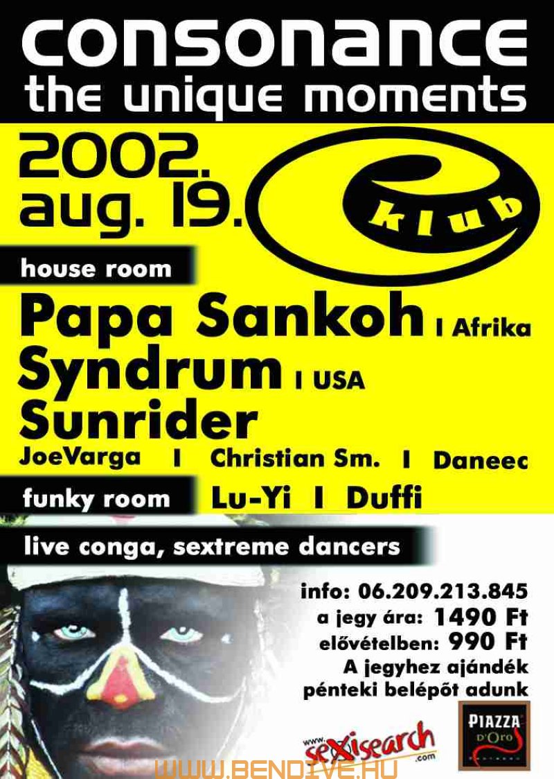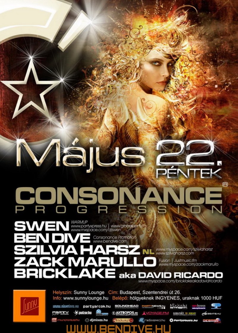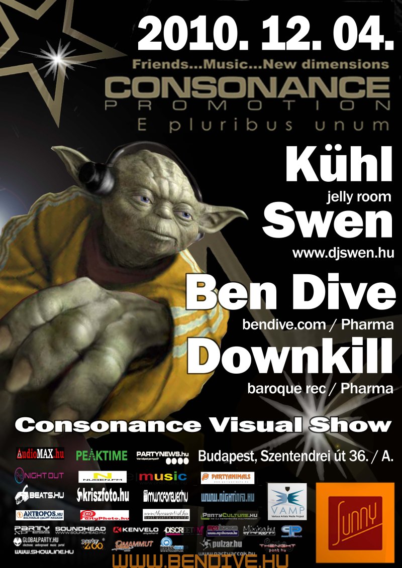2002-öt írtunk, amikor els?ként testet öltött a Consonance nev? partisorozattal egy régi álom. Ez az álom arról szólt, hogy legyen egy rendszeresen megrendezend? klubest, ahol az összhangra való ösztönös törekvés jellemzi a zenét, a hangulatot, a helyszínt. Innen ered a név is, hiszen minden, ami a világon a létezés fogalmát kimeríti, összhangra törekszik, legyen szó akár egy légbuborék, egy vízcsepp gömbalakjáról, a legegyszer?bb fizikai jelenségekr?l vagy az emberi lélek bels? egyensúlyáról: minden és mindenki igyekszik összhagnban élni, létezni.