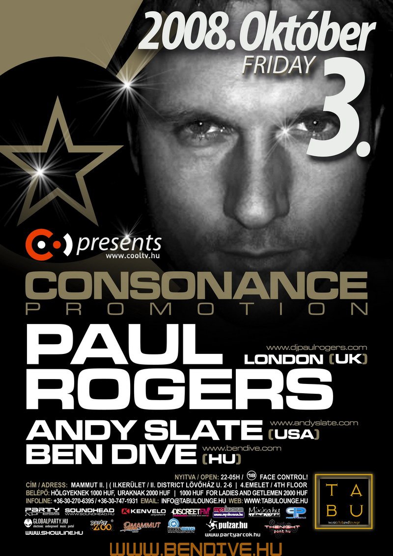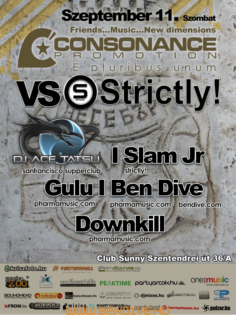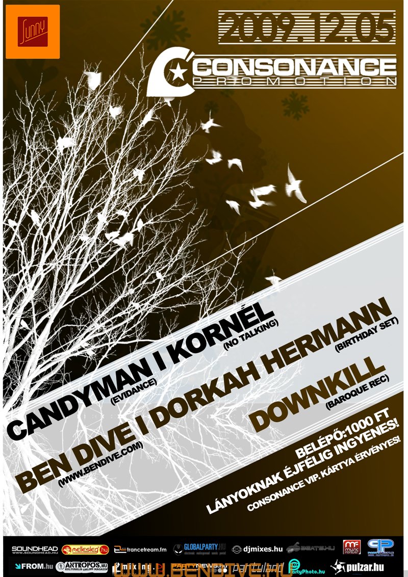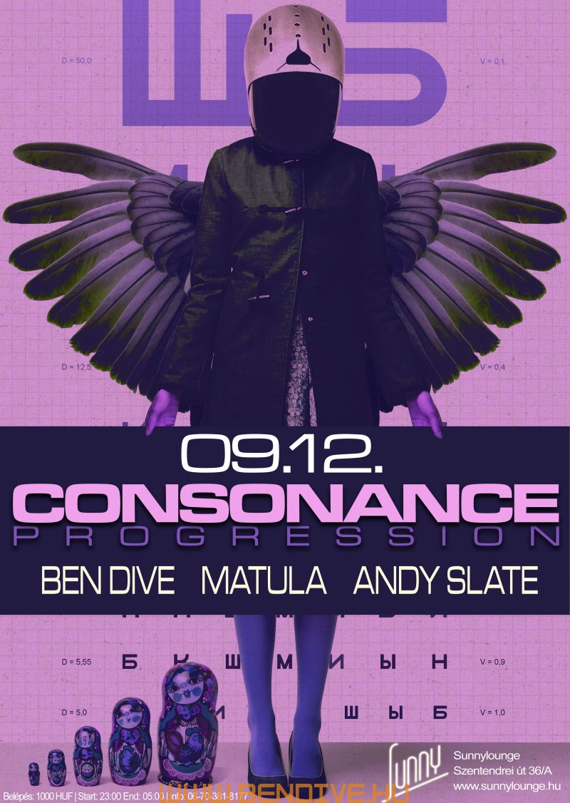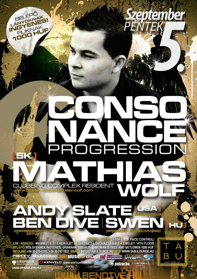 2002-öt írtunk, amikor els?ként testet öltött a Consonance nev? partisorozattal egy régi álom. Ez az álom arról szólt, hogy legyen egy rendszeresen megrendezend? klubest, ahol az összhangra való ösztönös törekvés jellemzi a zenét, a hangulatot, a helyszínt. Innen ered a név is, hiszen minden, ami a világon a létezés fogalmát kimeríti, összhangra törekszik, legyen szó akár egy légbuborék, egy vízcsepp gömbalakjáról, a legegyszer?bb fizikai jelenségekr?l vagy az emberi lélek bels? egyensúlyáról: minden és mindenki igyekszik összhagnban élni, létezni.