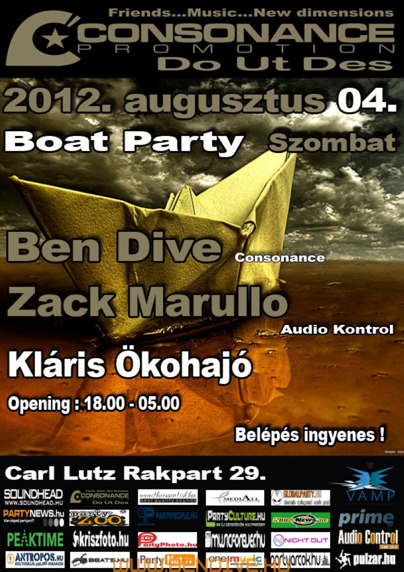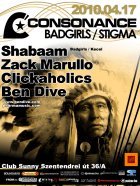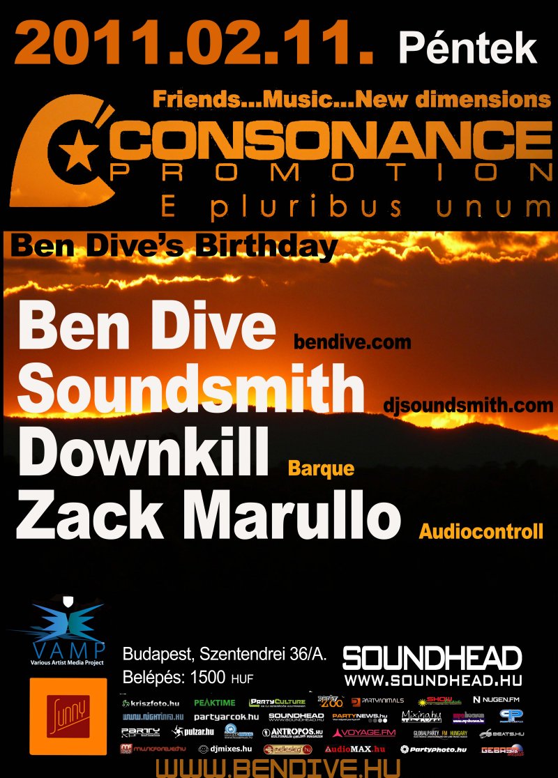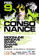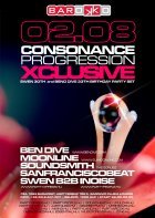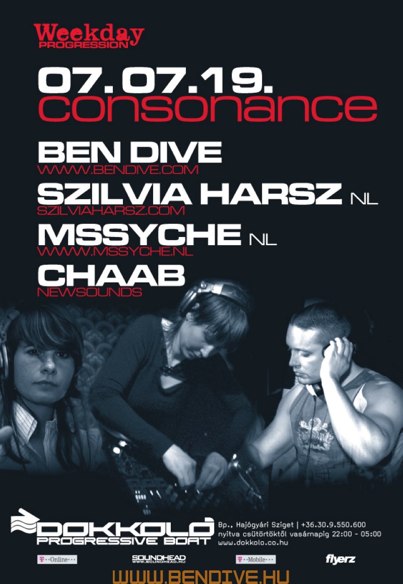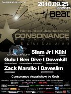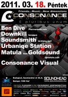 A Consonance ötlete Ben Dive fejében született meg. Még abban az évben, tehát 2002-ben útjára is indította az estet, melynek els? otthona a legendás budapesti Pacha Bar volt, majd a közkedvelt Dokkolón kötöttek ki. A nyári helyszínt a Barokko, 2008-ban az impozáns Tabu Lounge, majd 2009 - ben a tüneményes Sunny váltotta fel. Emellett több alkalommal tett már sikeres és emlékezetes kirándulást a parti a Budapest várostáblán túl is. Az esten a hazai élvonal képvisel?i rendszeresen teszik tiszteletüket (pl. Zack Marullo, Soundsmith, Downkill, Moonline, Shootie,Ywel & Tristan, Gulu, SanFranciscoBeat stb.), de külföldr?l is szerepeltek már olyanok, akik a tehetségük mellett a gondolkodásmódjukban is közel állnak rendezvény irányelveihez (Ms. Syche, Paul Rogers /UK/, Mathias Wolf, Szilvia Harsz, Andy Slate stb...), tehát a maguk útját járják, amin a közönség is szívesen hagyja magát vezetni, mert mindig hatalmas utazások kerekednek bel?le.